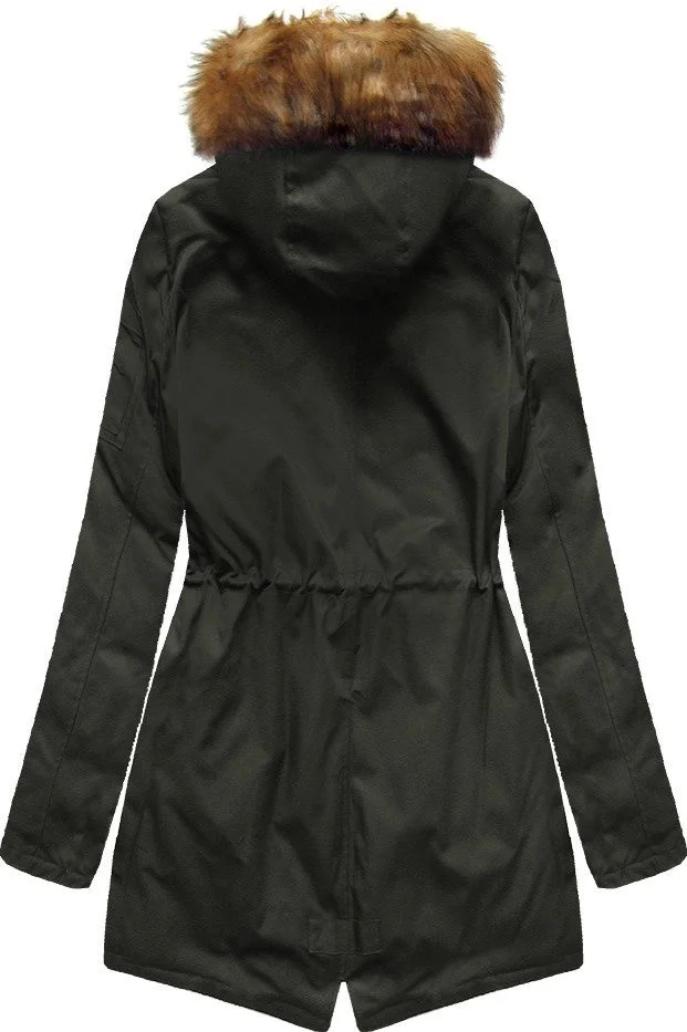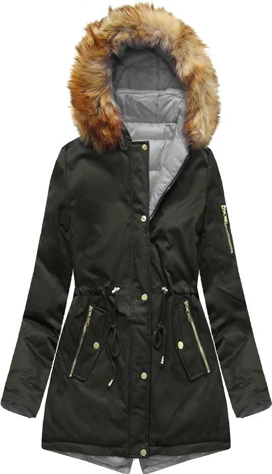 Army-šedá oboustranná dámská zimní bunda parka s kapucí (b2636)