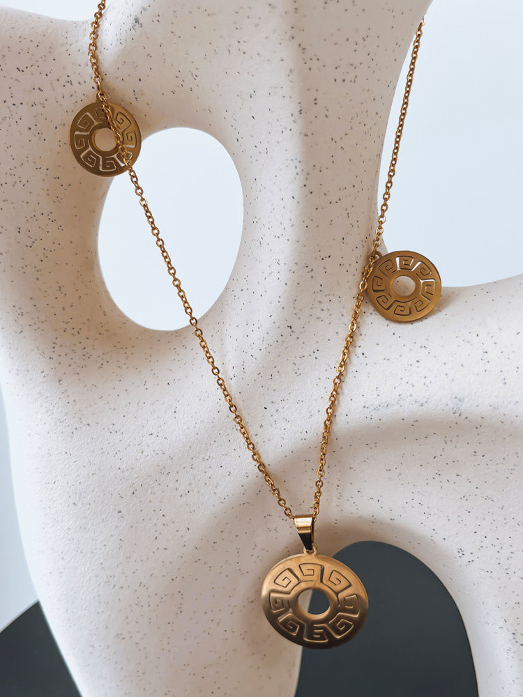 Tento třídílný řetízek je neobvyklou kompozicí, která elegantně spojila tři motivy a vytvořila tak jedinečné umělecké dílo, které potěší jak svou estetikou, tak významem. Tato ozdoba bude ideální pro sportovní i elegantní styling.