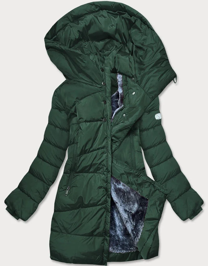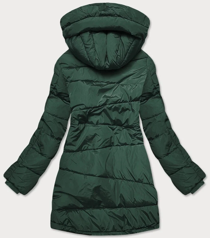 Přidání recenze k Asymetrická dámská zimní bunda v lahvově zelené barvě (m-21113)