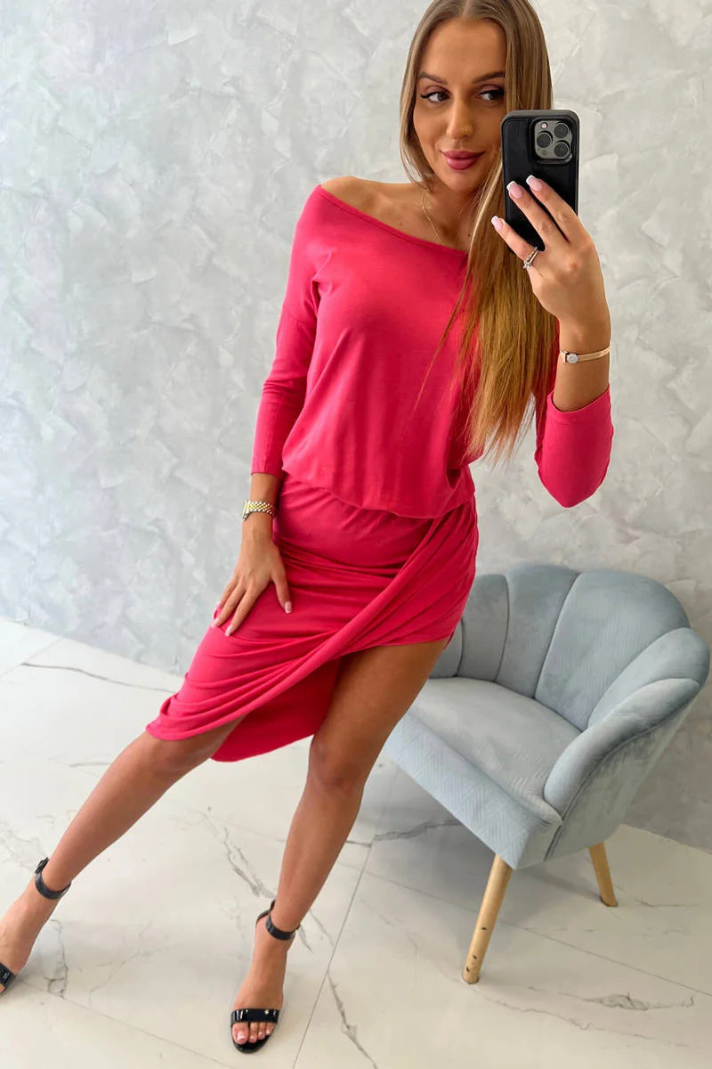 Asymetrické šaty, 3/4 rukávy, malinová barva