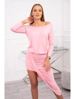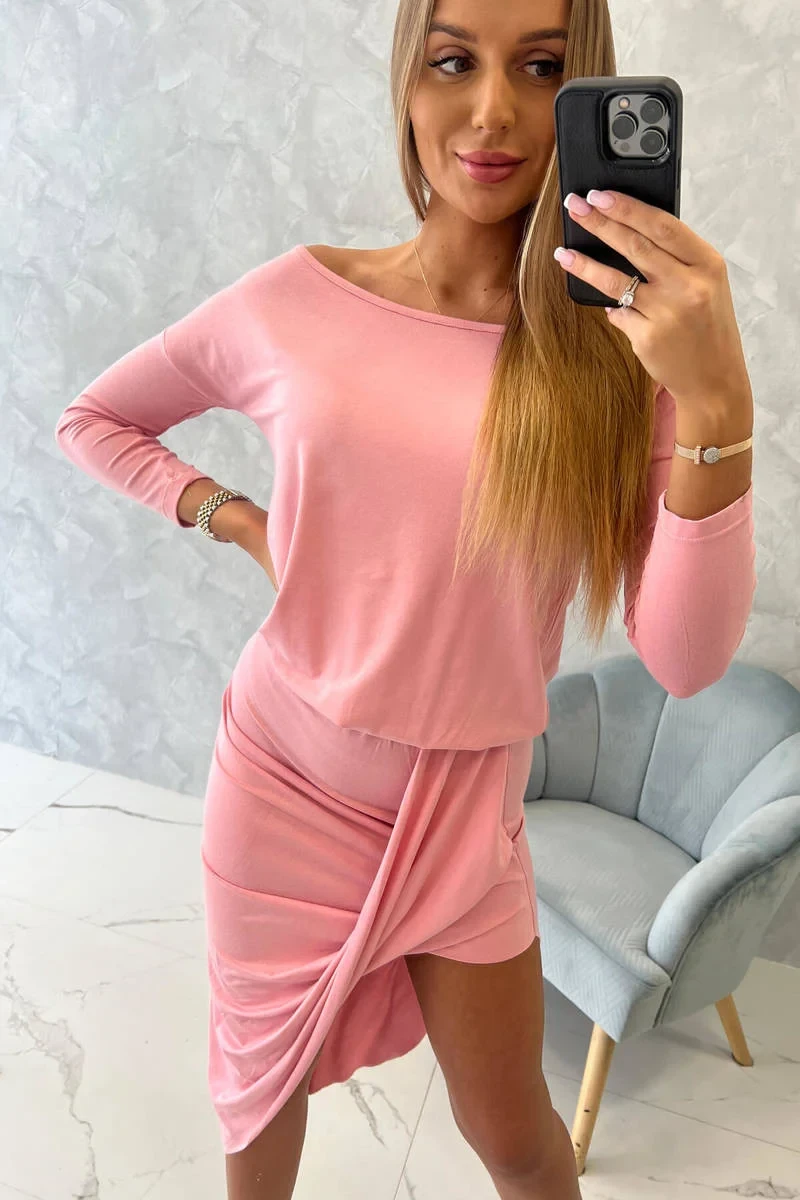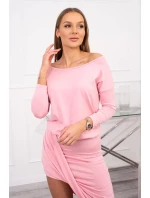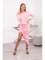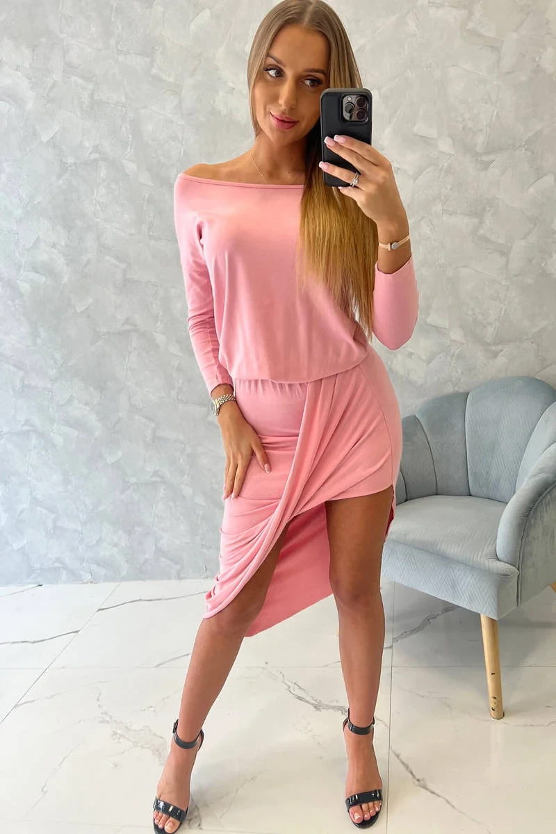Asymetrické šaty, 3/4 rukávy, pudrově růžové