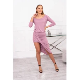 Asymetrické šaty s 3/4 rukávy, tmavě růžové