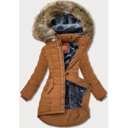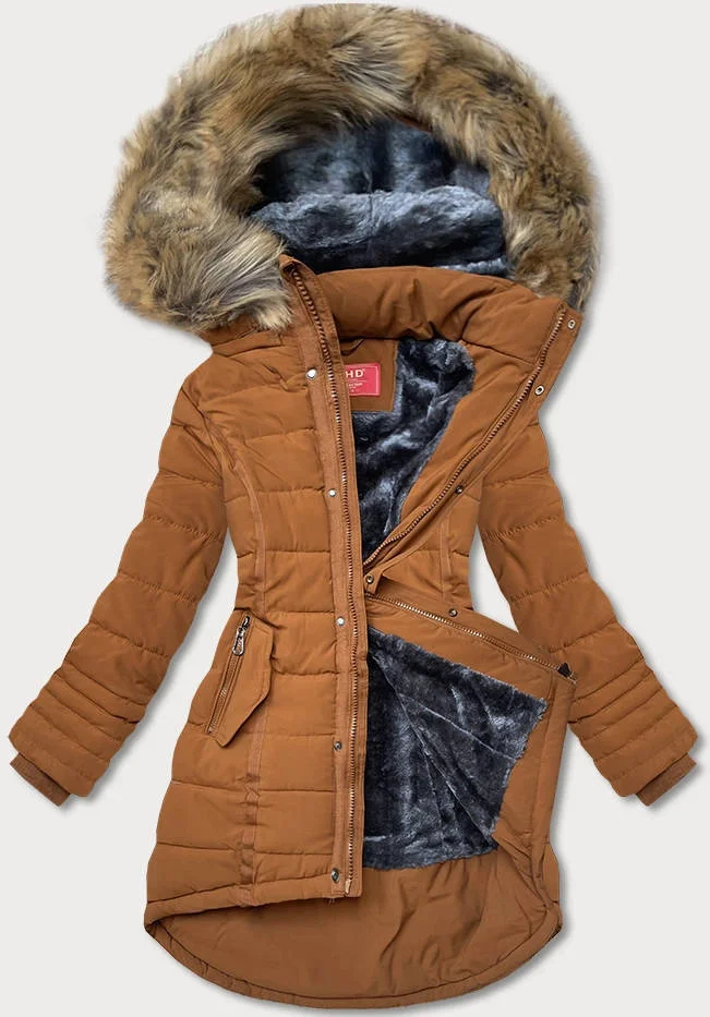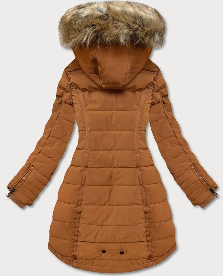 Asymetryczna kurtka zimowa damska karmelowa (m-21301)