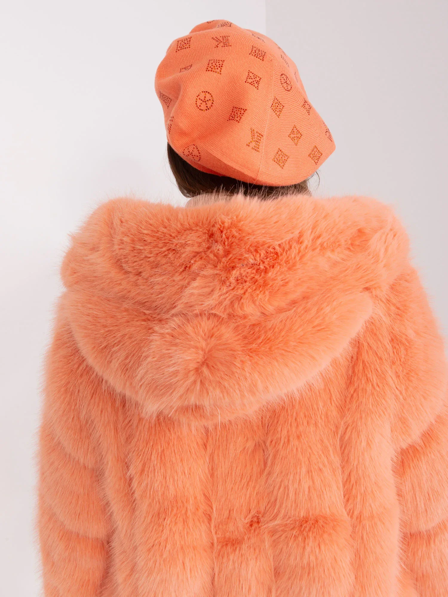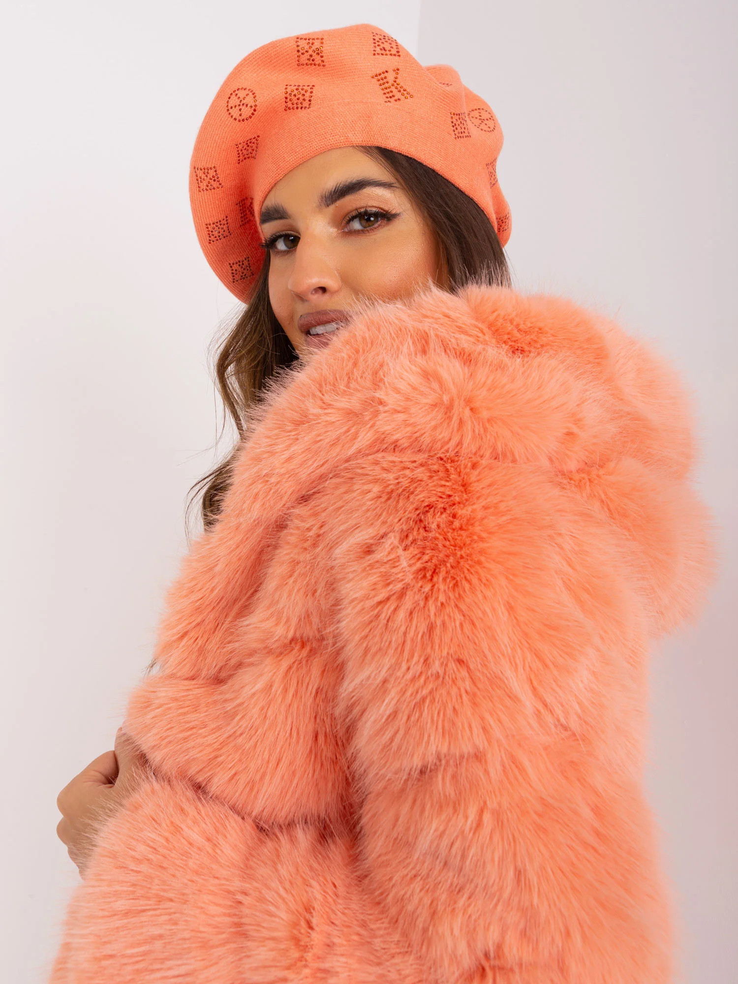 Dámský broskvový baret s aplikací šperků .
