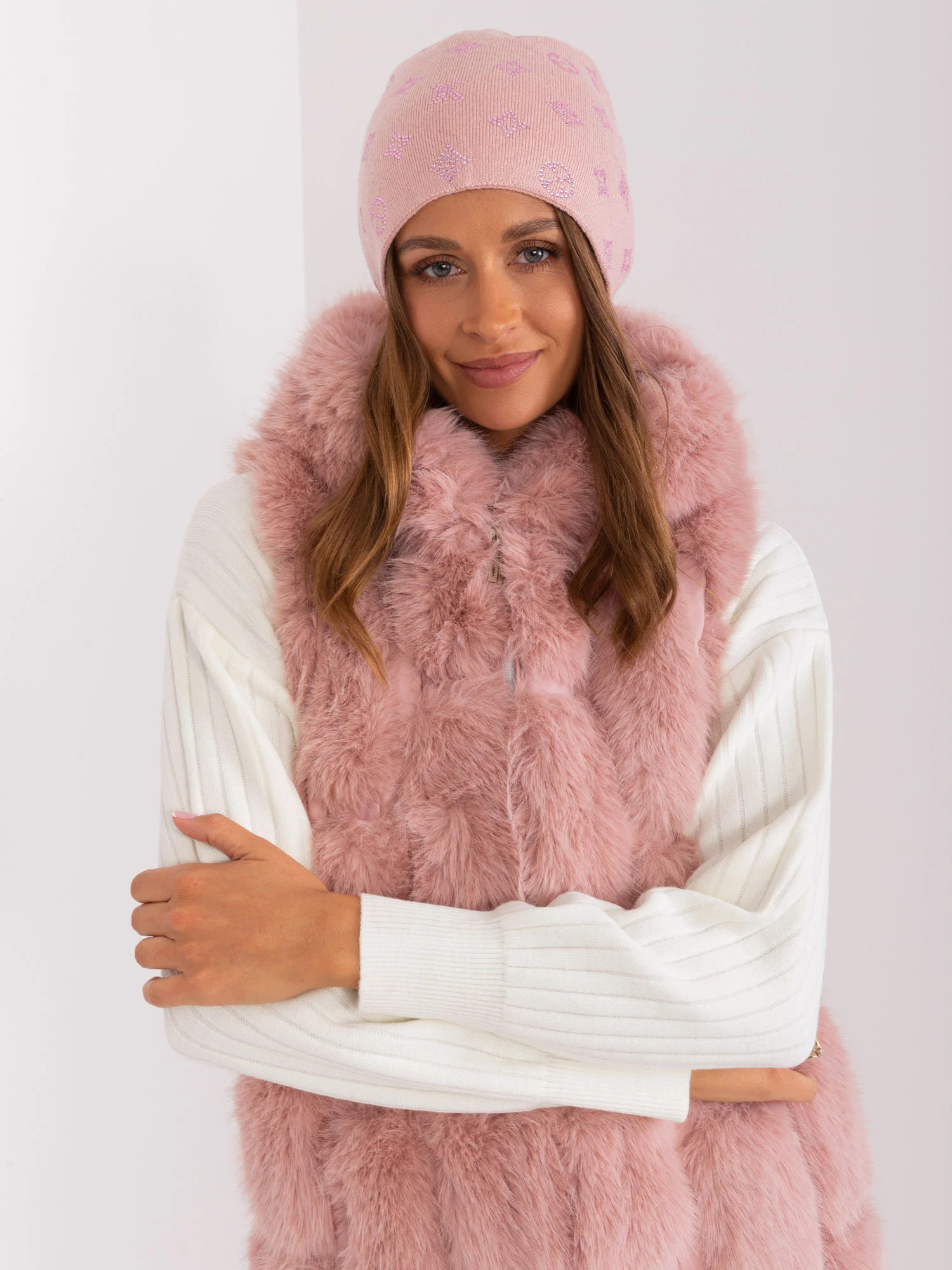 Růžová dámská zimní čepice s aplikací .