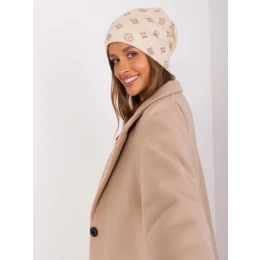 Světle béžová zimní čepice s kamínky .