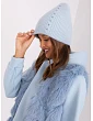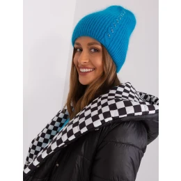 Světle modrá dámská čepice s aplikacemi.