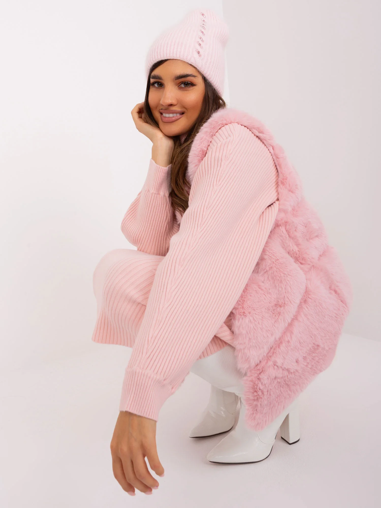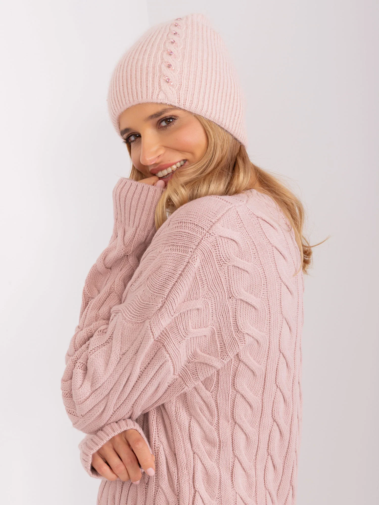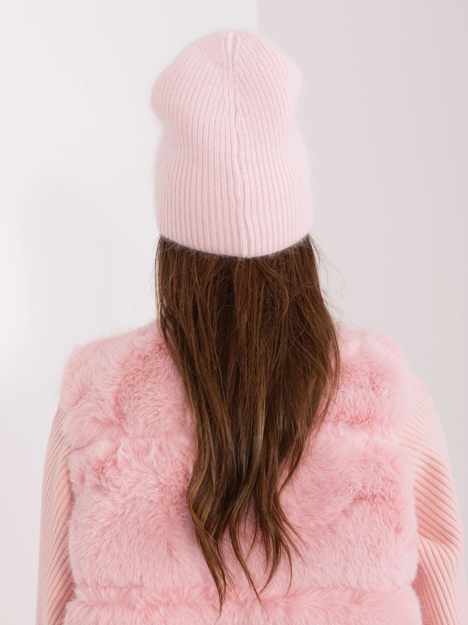 Světle růžová dámská zimní čepice.