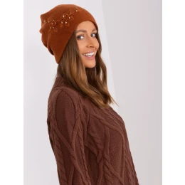 Světle hnědá dámská čepice s aplikací.