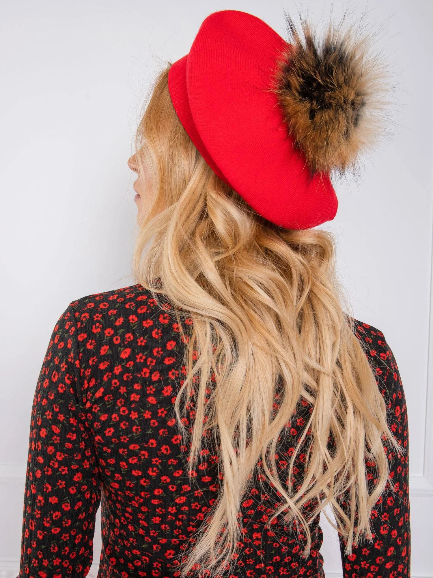 Beret z pomponem czerwony.