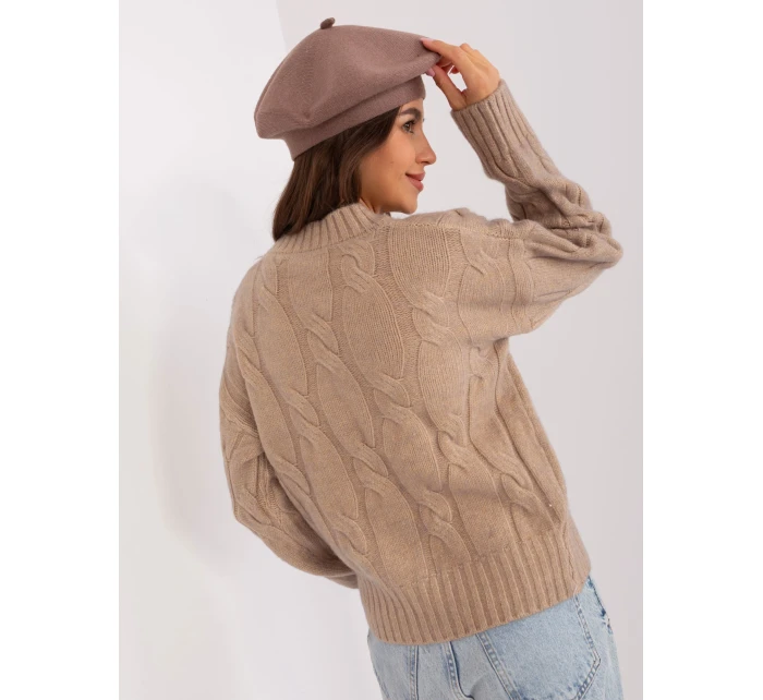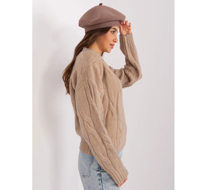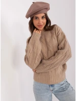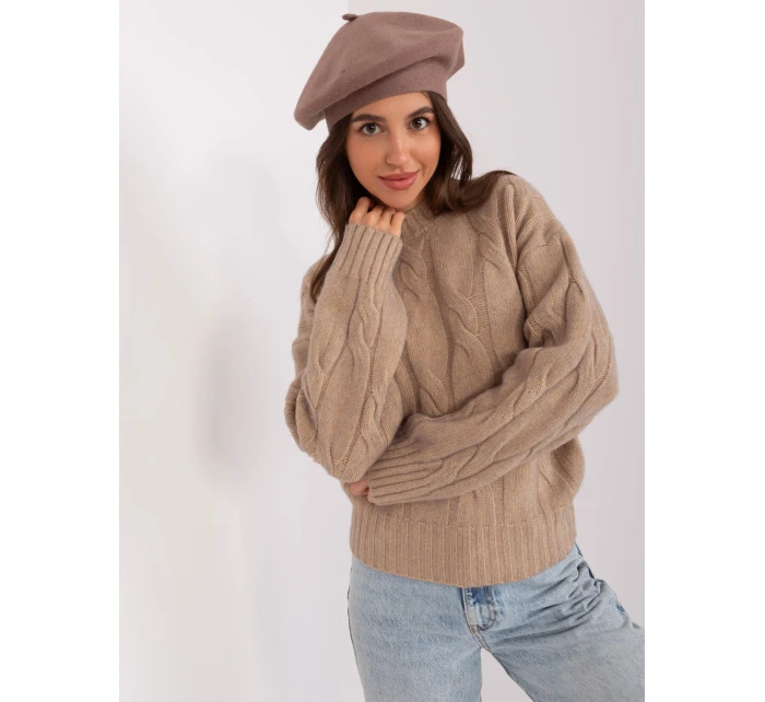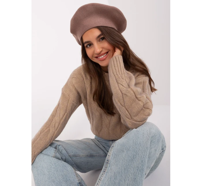 Tmavě béžový jednobarevný dámský baret .
