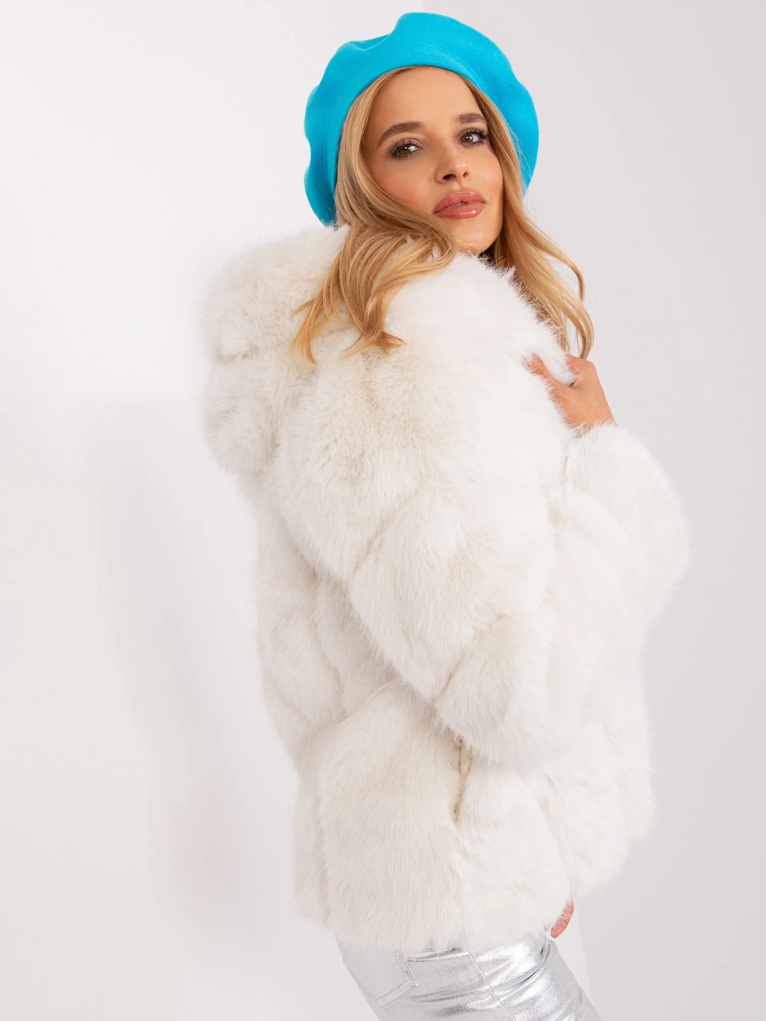 Dámský tyrkysový zimní baret.