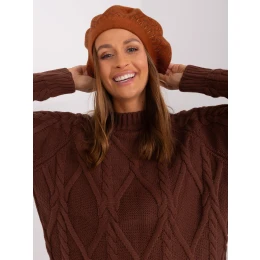 Světle hnědý pletený baret.