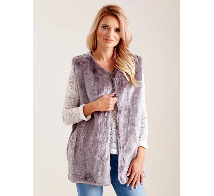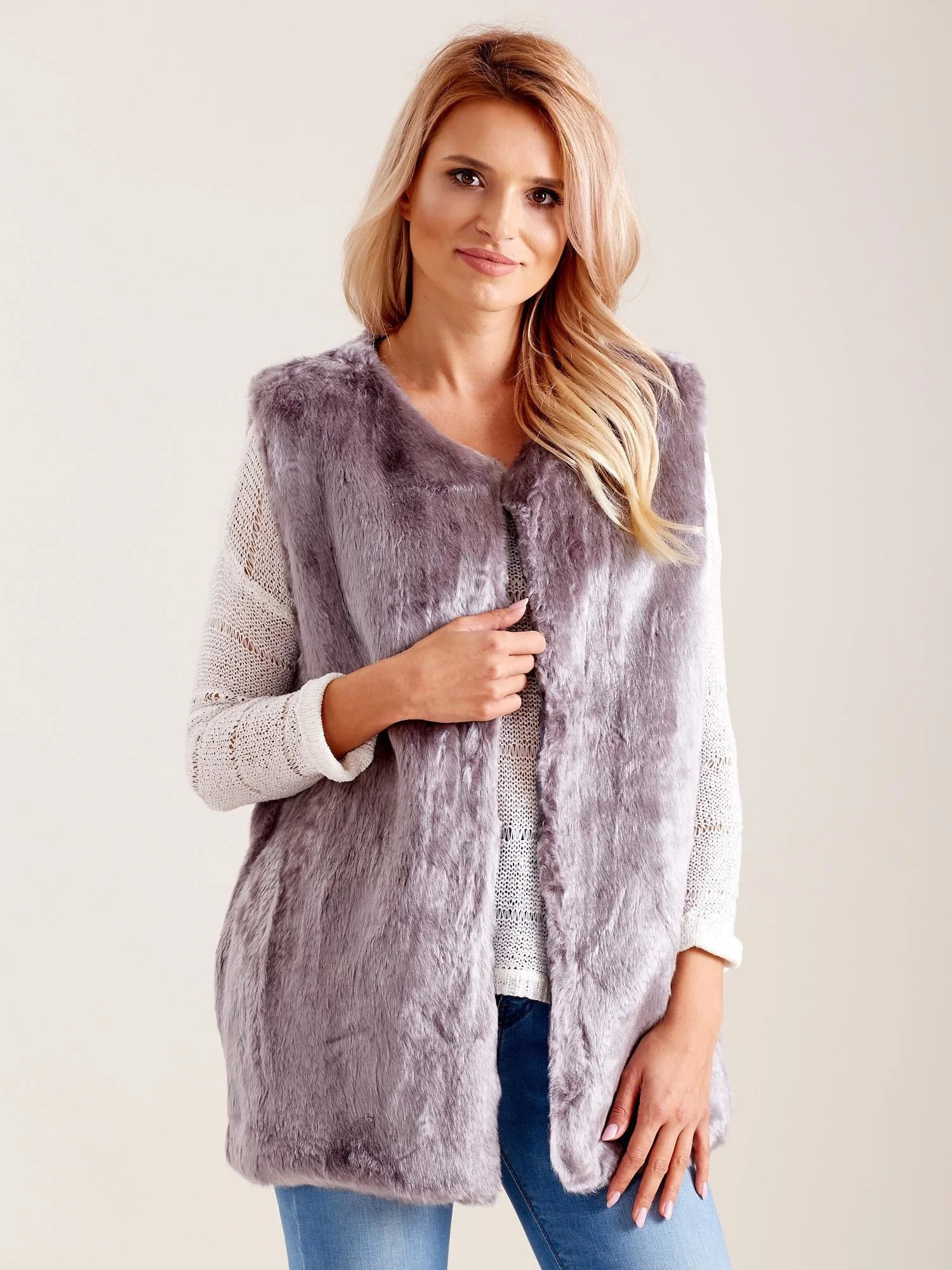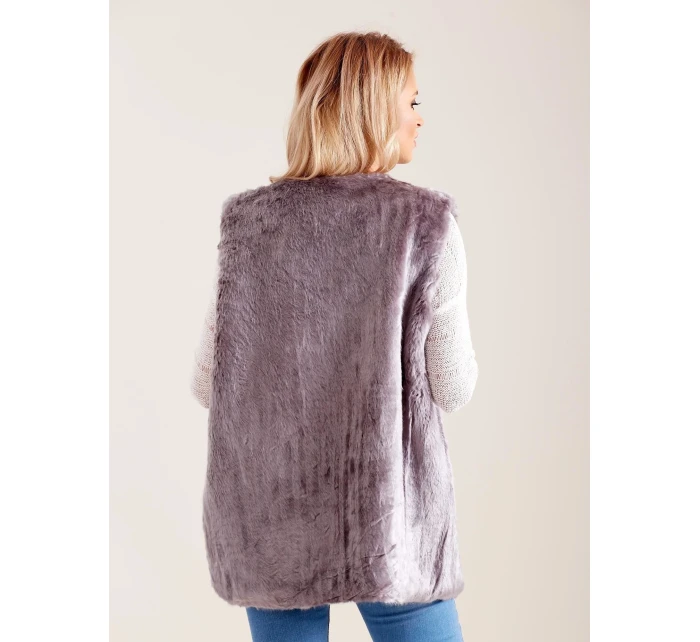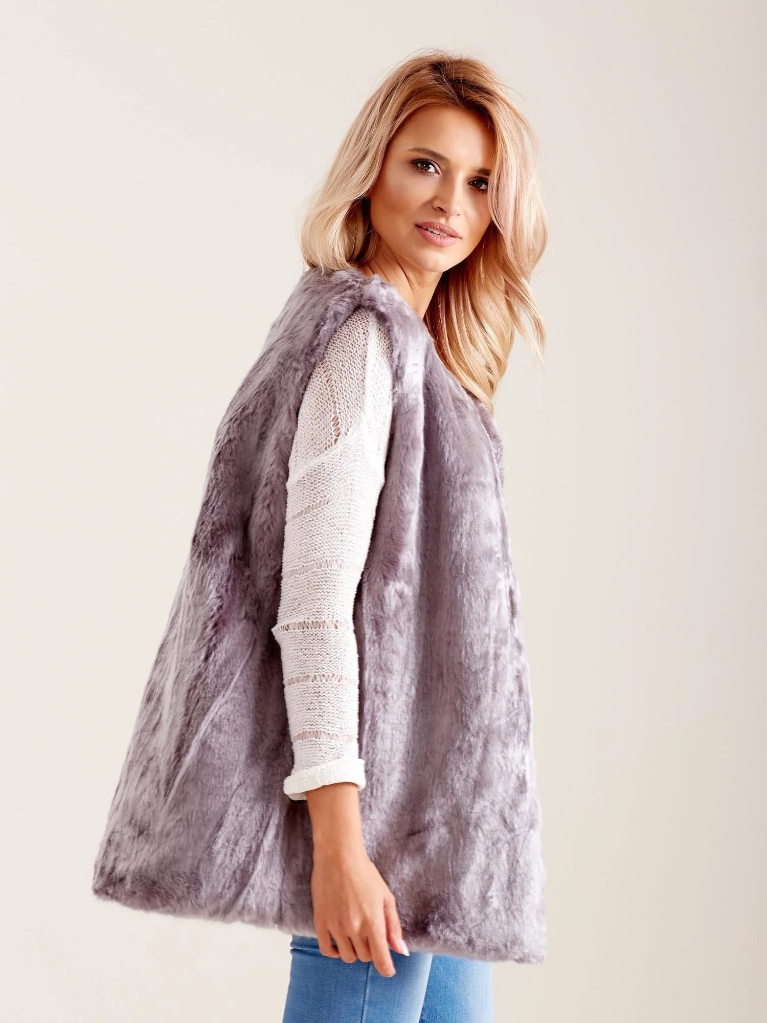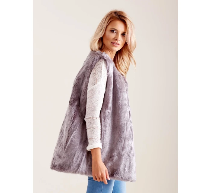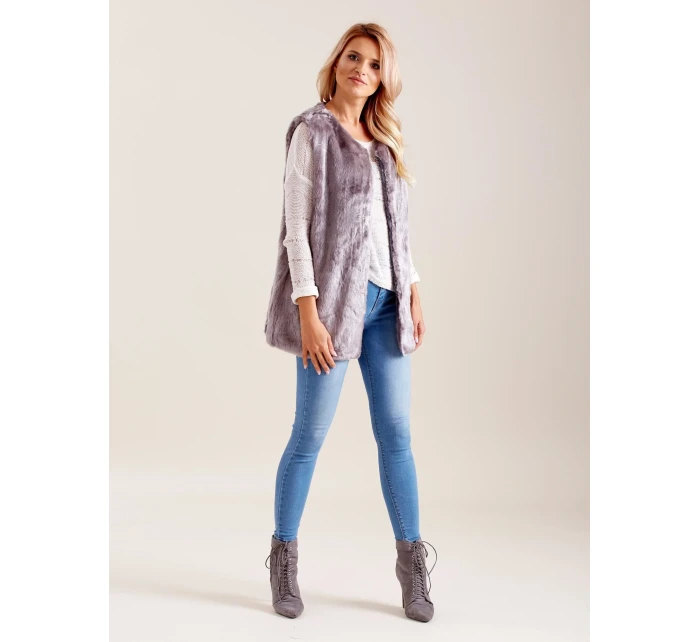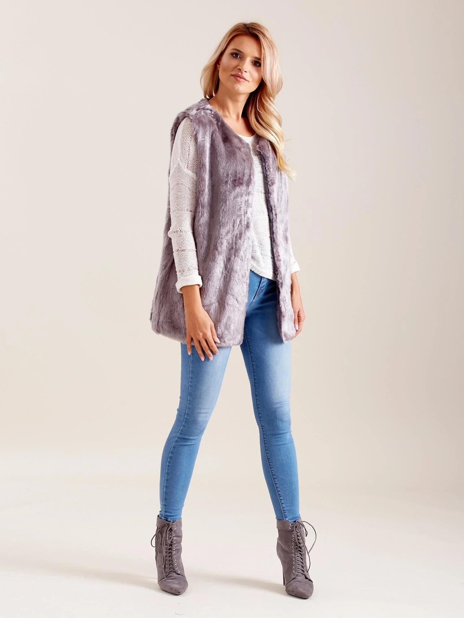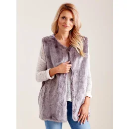 Dámská vesta z umělé kožešiny v šedé barvě.