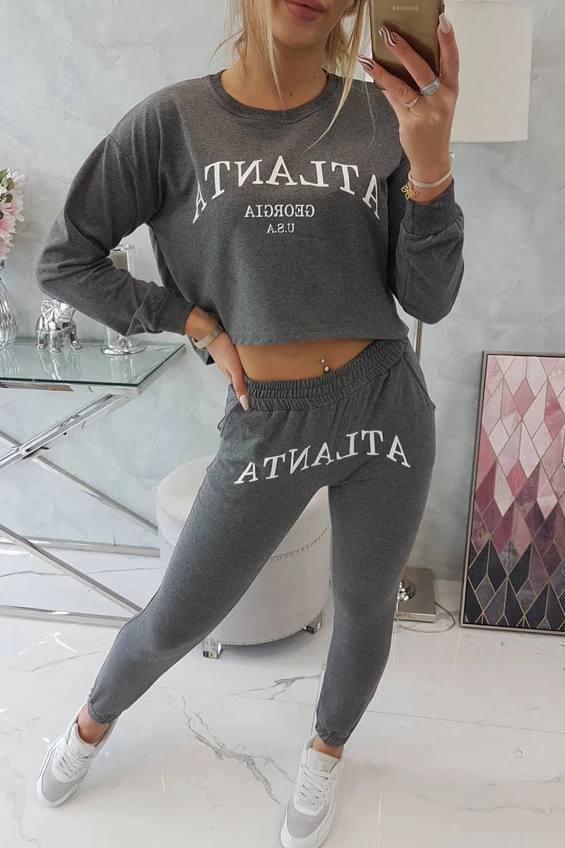 Představujeme vám sadu halenky a kalhot. Halenka s potiskem Atlanta. Kalhoty s kapsami a zavazováním v pase. Sada je vyrobena z vysoce kvalitního materiálu. Velikost je univerzální a vyhovuje dámám velikosti S, M nebo L.