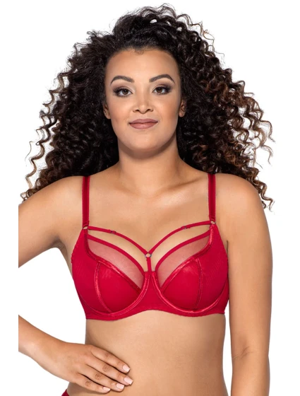 Měkká podprsenka s kosticemi a ozdobnými pásky v dekoltu.