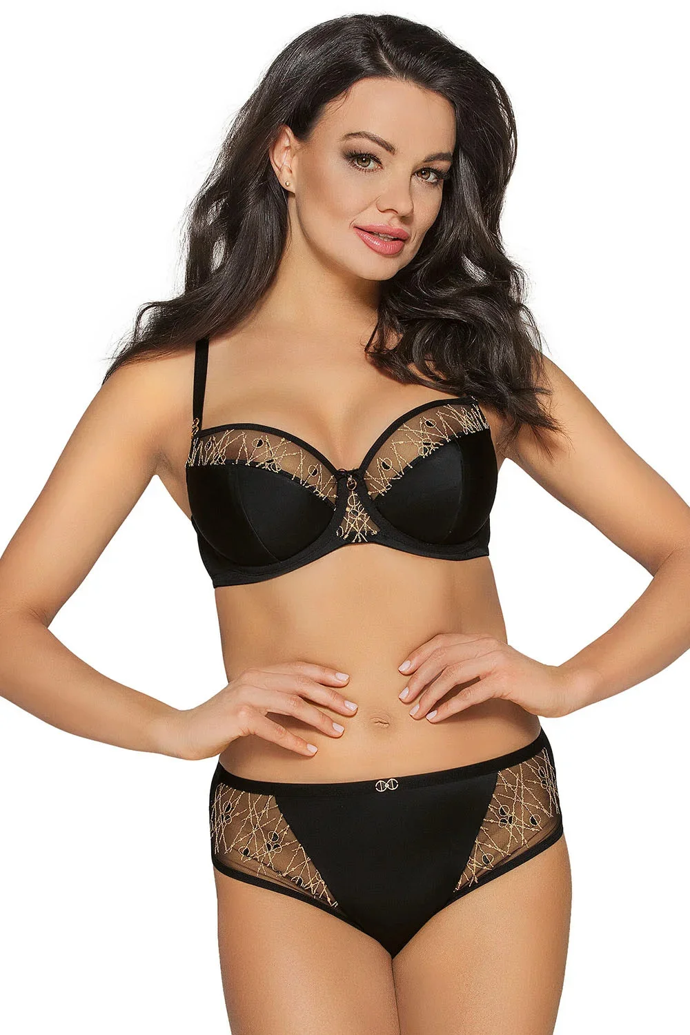 Podprsenka značky Ava, model 2021 Guell. Má drátky, které podporují prsa a správně je tvarují. Výrobek má nastavitelná ramínka bez možnosti jejich odepnutí. Podprsenka se zapíná na háčky. Místo zapínání: vzadu. Výrobek je vyroben z 88 % polyamidu, 8 % bavlny, 4 % elastanu. Dámský výrobek.