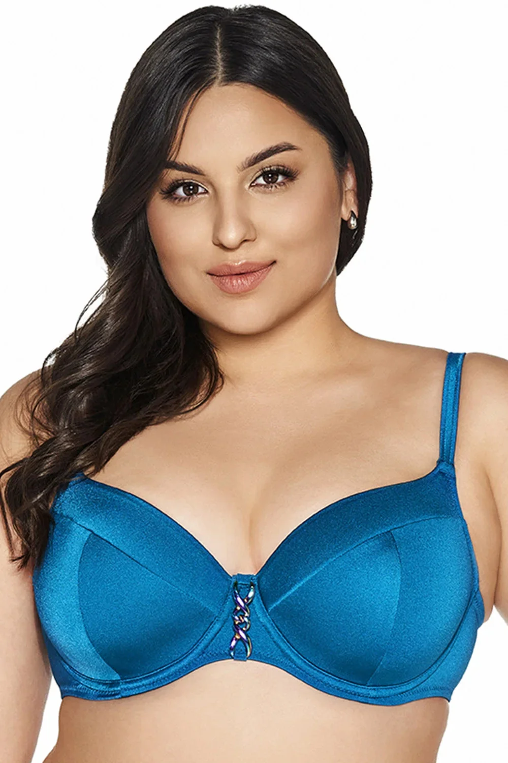 Plavky značky Ava, model SK-13 MAXI, s drátky, které podporují a tvarují prsa. Výrobek má nastavitelná ramínka, která nelze odepnout, kovové háčky na ramínka. Plavky se zapínají na přezku. Místo zapínání: na zádech. Výrobek je vyroben z 80 % polyamidu, 20 % elastanu. Dámský výrobek.