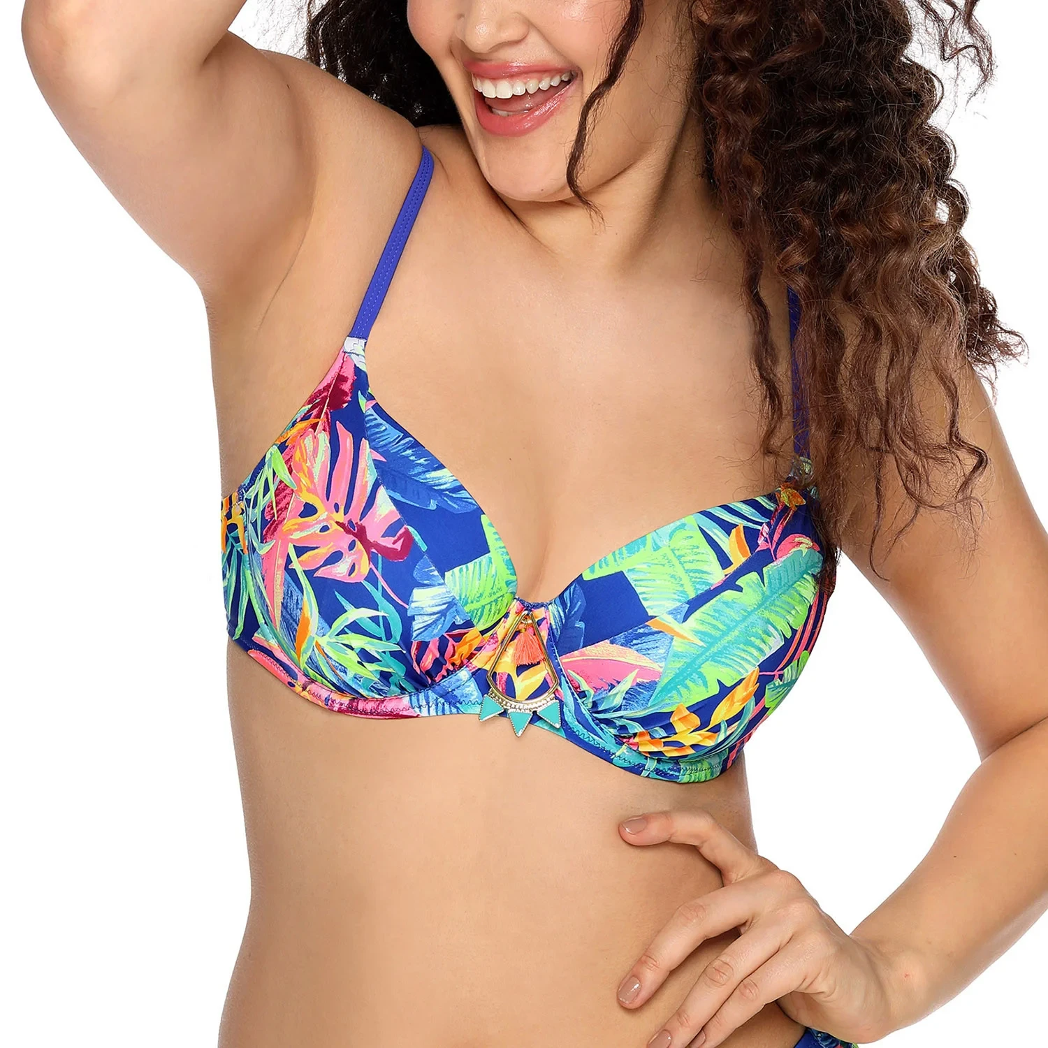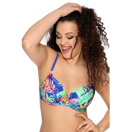 Plavky značky Ava, model SK-143. Mají drátky, které podpírají prsa a správně je tvarují. Výrobek má nastavitelná ramínka bez možnosti jejich odepnutí. Háčky na ramínka. Plavky se zapínají sponou. Místo zapínání: na zádech. Výrobek je vyroben z 80 % polyamidu, 20 % elastanu. Boky vyztužené látkou. Dámský výrobek.