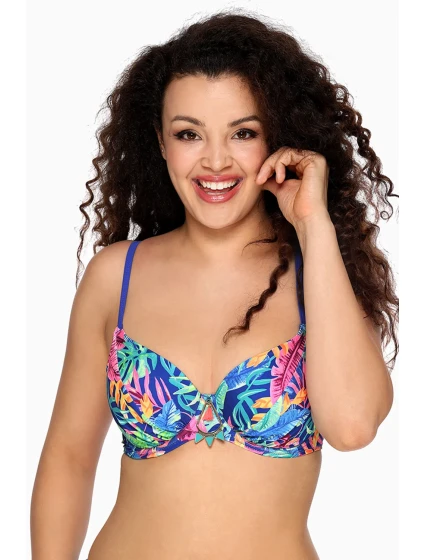 Model pěkně obepíná poprsí, stahuje jej ke středu hrudníku, nadnáší jej a dodává mu oblý tvar. Velmi kvalitní materiál, ze kterého je podprsenka vyrobená, se pěkně přizpůsobuje postavě, při nošení se nevytahuje a navíc odolává působení slunečního záření. Model zdobí pastelové barvy.