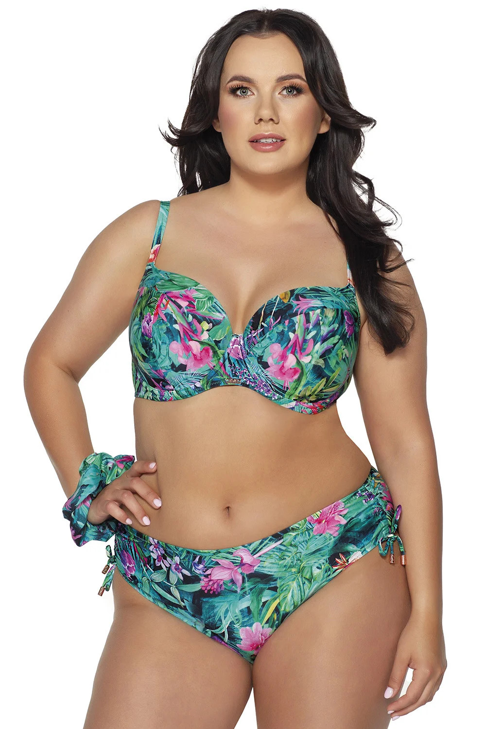 Plavecký kostým od Avy. Model SK-205 MAXI. Má dráty, které prsa vhodně tvarují. Výrobek má nastavitelné popruhy bez možnosti odepnutí. Kovové háčky na popruh. Plavky se zapínáním na přezku. Upevňovací bod: vzadu. Výrobek je vyroben z 80 % z polyamidu a 20 % z elastanu. Boky vyztužené látkou. Výrobek pro ženy.