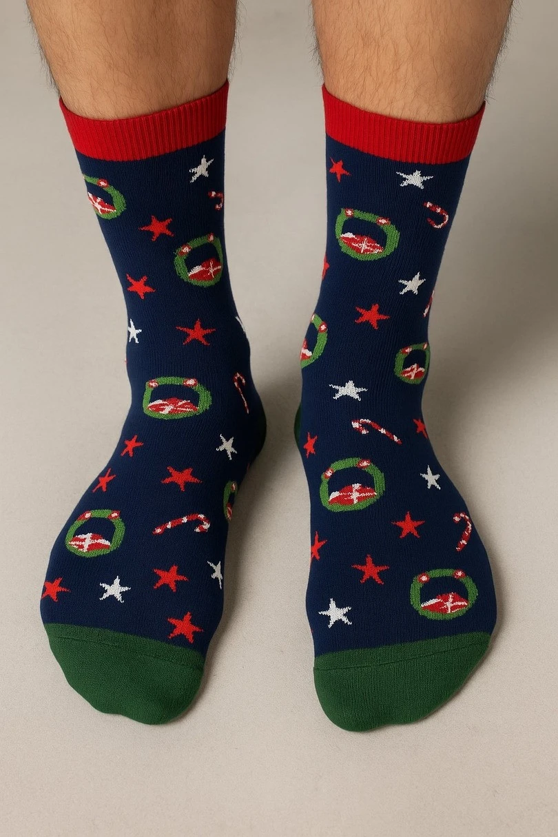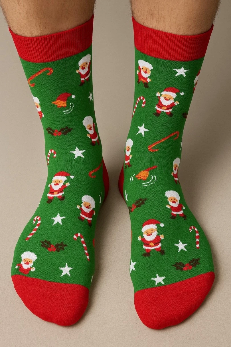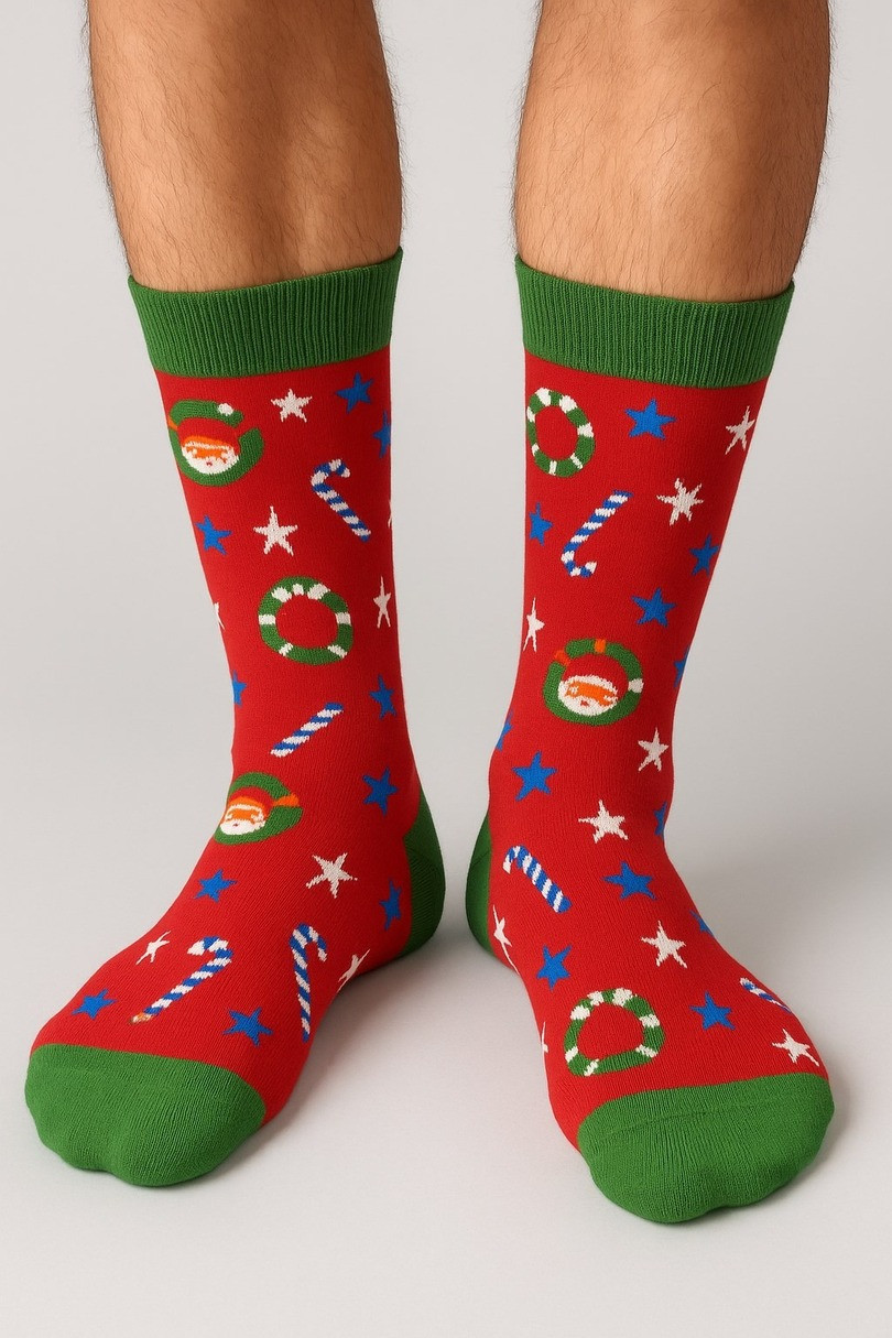 Wprowadź odrobinę humoru i świątecznej radości do swojej garderoby z męskimi skarpetkami świątecznymi! Te wzorzyste skarpetki to idealne połączenie wygody, jakości i zabawnego designu. Wykonane z miękkiej bawełny zapewniają idealne dopasowanie, trwałość oraz komfort noszenia przez cały dzień. Świąteczne motywy sprawią, że każda stylizacja nabierze wyjątkowego, radosnego charakteru. To doskonały wybór na prezent lub jako modny dodatek w zimowym sezonie.