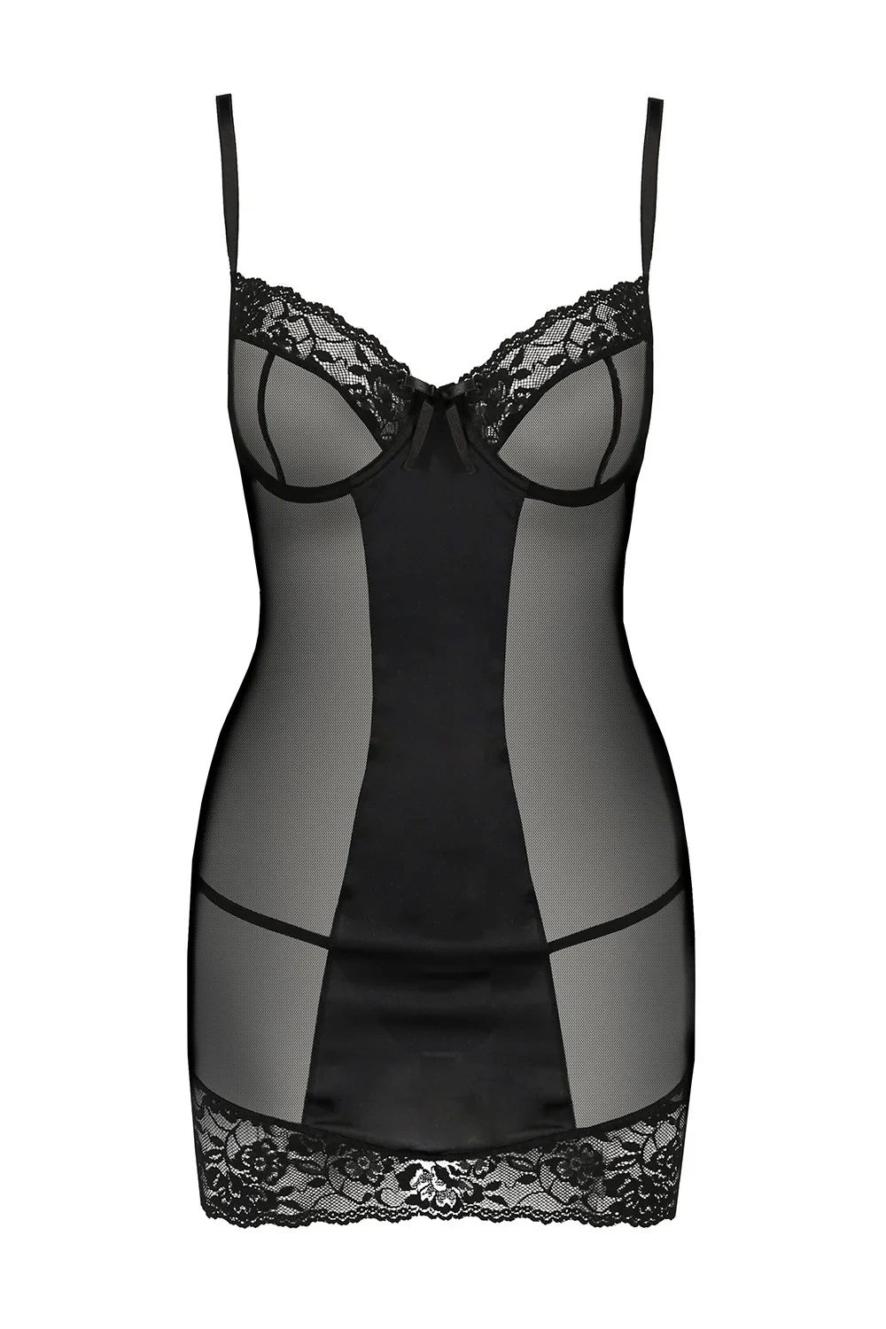 Noční prádlo značky Avanua, model Melek chemise. výrobek je vyroben ze 75 % polyesteru, 15 % polyamidu, 10 % elastanu. má drátky, které podporují prsa a vhodně je tvarují. výrobek má nastavitelná ramínka. bokové kalhotky. ženský výrobek.