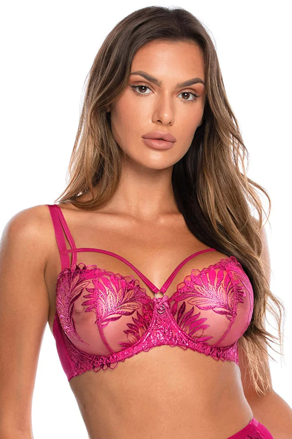 Podprsenka Axami, model V-10251, má drátky, které podporují a tvarují prsa, svislé velrybí kostice na bocích, nastavitelná ramínka, která nelze odepnout, kovové háčky na ramínkách, zapínání na háčky a očka, zadní díl, vyrobeno z 56 % polyesteru, 42 % polyamidu, 2 % elastanu, dámské.