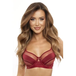 Axami V-12021 to miękki biustonosz na fiszbinach z prześwitującym, haftowanym tiulem. Dwuczęściowe miseczki z cięciem modelują i unoszą biust, a elastyczne wykończenia dbają o stabilność i wygodę. Regulowane, niewypinane ramiączka oraz zapięcie na haftki ułatwiają dopasowanie. Pas z siateczki jest przewiewny i komfortowy w noszeniu. Skład: 56% poliamid, 38% poliester, 6% elastan.