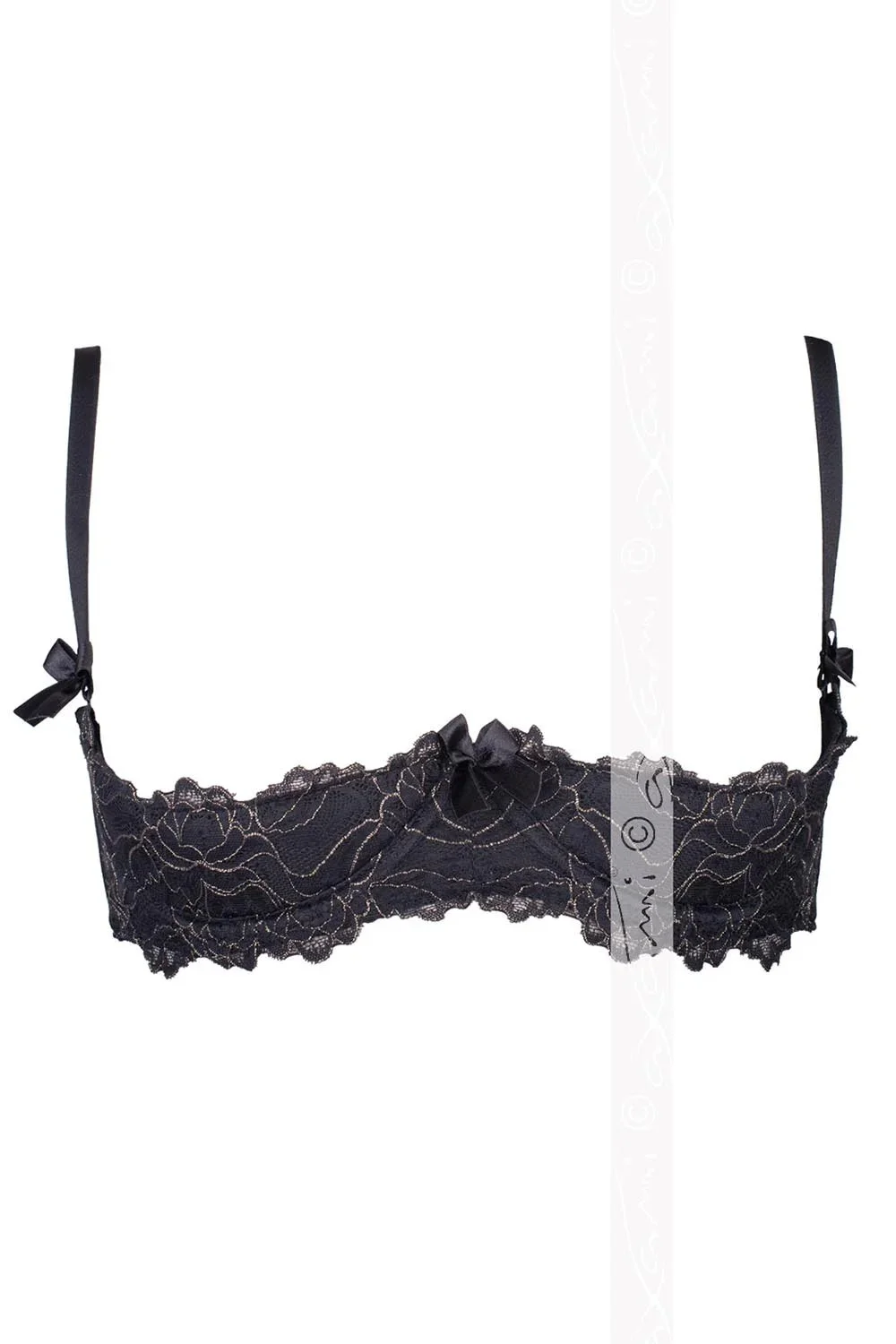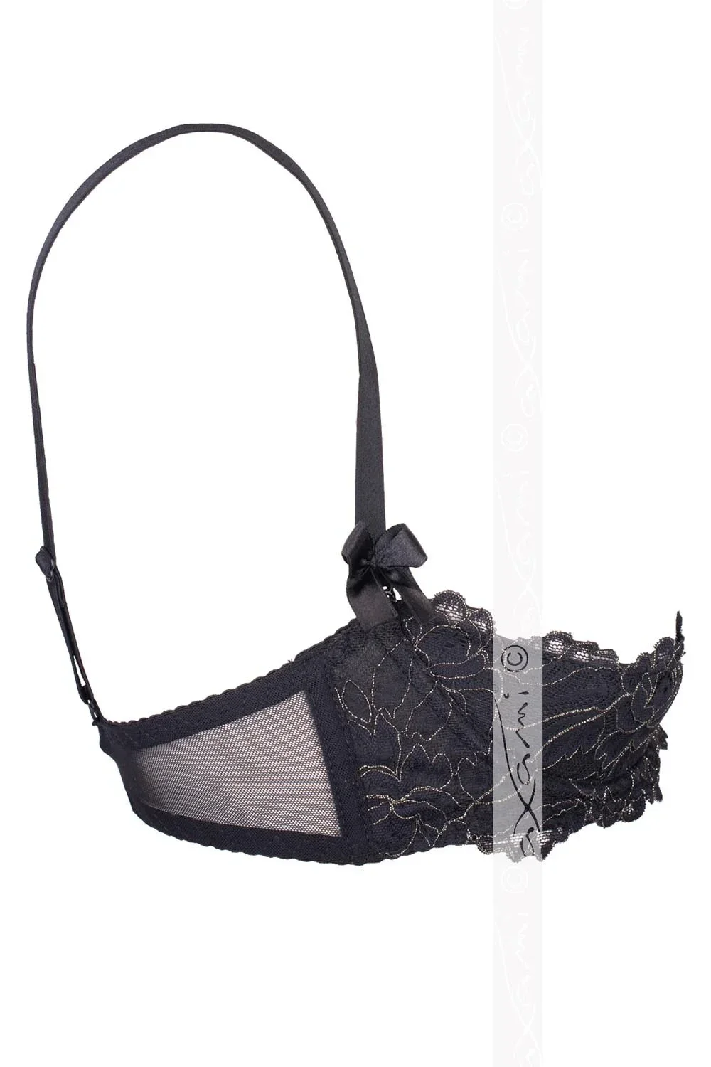 Podprsenka značky Axami, model V-5891 Meteorite. Má drátky, které podporují a tvarují prsa. Svislé kostice na bocích. Výrobek má nastavitelná ramínka bez možnosti jejich odepnutí. Háčky k ramínkům jsou kovové. Podprsenka se zapíná na háčky. Místo zapínání: na zádech. Dvě řady svislých výšivek. 3 stupně vodorovných výšivek. Výrobek je vyroben z 58 % polyamidu, 17 % bavlny, 13 % polyuretanu, 8 % polyesteru, 5 % elastanu. Vlastnosti výrobku: Svůdná se zlatým leskem krajky.