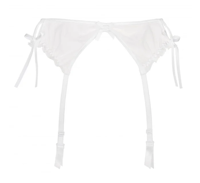 Podvazkový pás značky Axami. model V-6462 Neige. výrobek je vyroben z 93 % polyamidu, 7 % elastanu. vlastnosti výrobku: sexy jemné ženské límečky. místo zapínání: vzadu. zapínání na háčky. dvě řady svislých háčků. tři úrovně vodorovných háčků. pás se šňůrkami. dámský výrobek. šňůrky jsou nastavitelné.