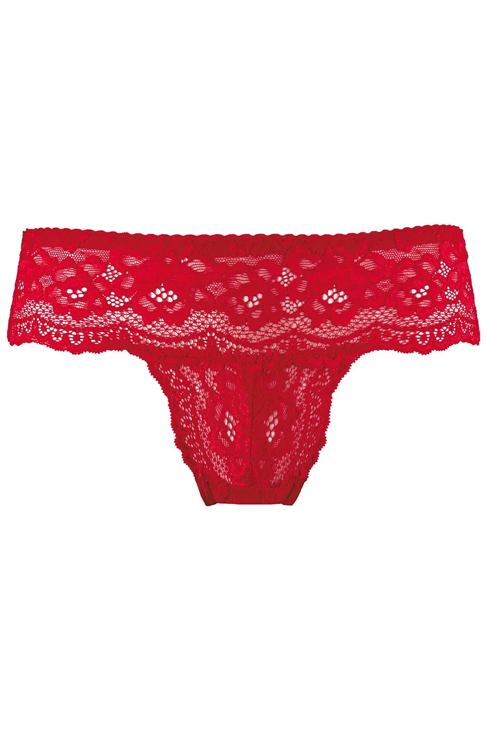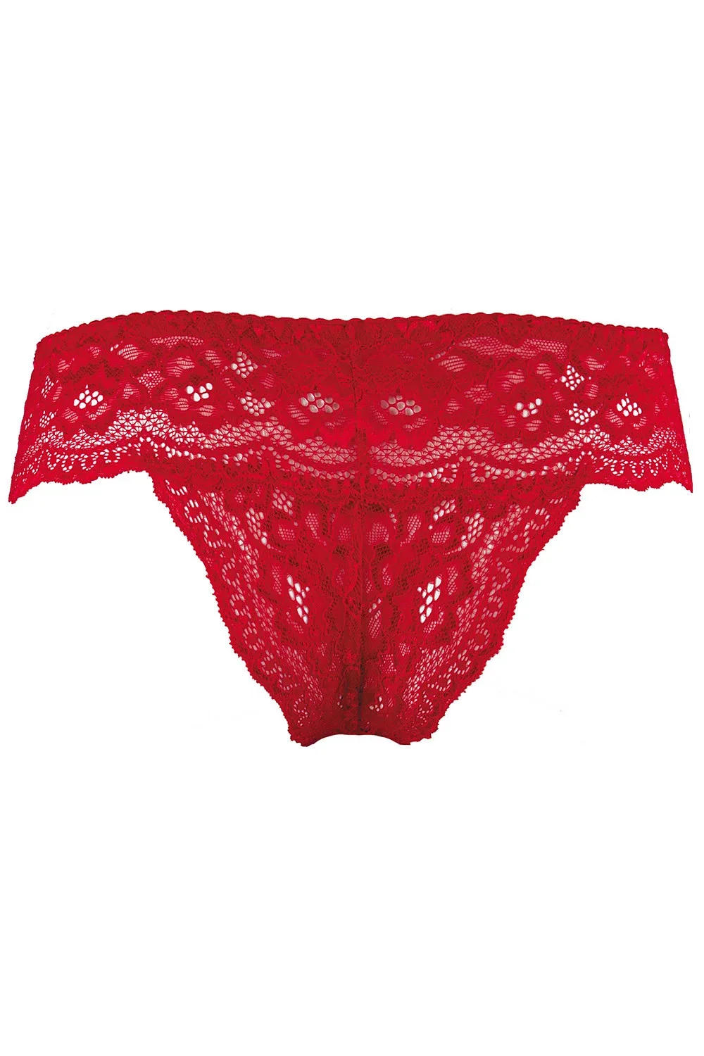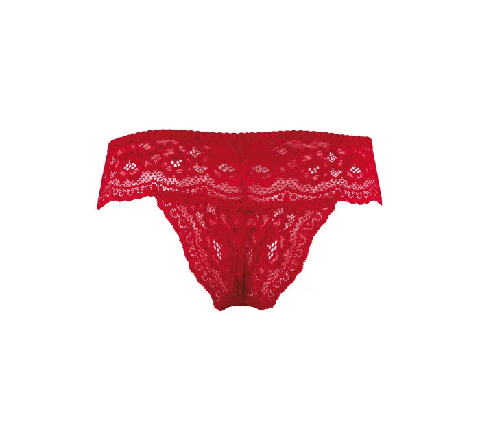 Nepostradatelnou součástí soupravy s podprsenkou V-9531 jsou tanga brazyliana v šarlatové barvě, měkká, pohodlná a především okouzlující svým dokonalým střihem zdůrazňujícím linii hýždí. Celé je vyrobeno z prvotřídní krajky s bavlněným klínem pro vaše pohodlí.