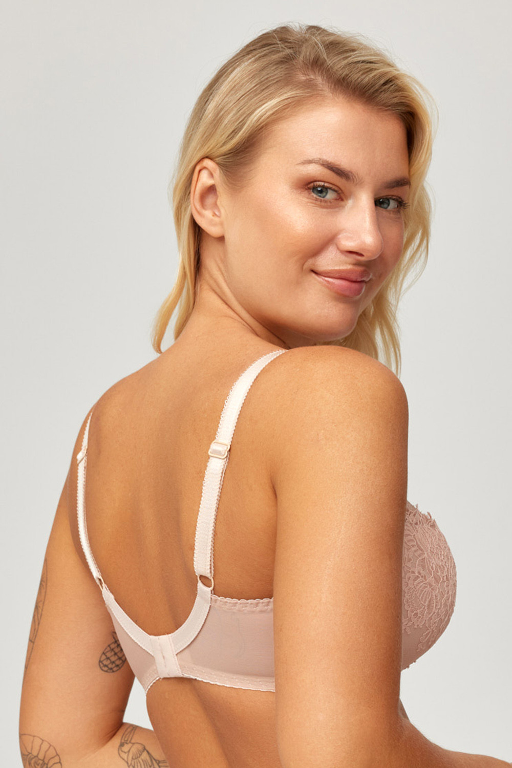 Azal Sara to miękki biustonosz na fiszbinach, który oferuje naturalny kształt piersi i stabilne podtrzymanie. Regulowane, niewypinane ramiączka oraz zapięcie na haftki ułatwiają dopasowanie. Gładkie, miękkie miseczki zapewniają wygodę i dyskrecję pod ubraniem. To praktyczna propozycja do codziennego użytku, wykonana z przyjemnego w dotyku materiału. Skład: poliamid 88%, bawełna 8%, elastan 4%.