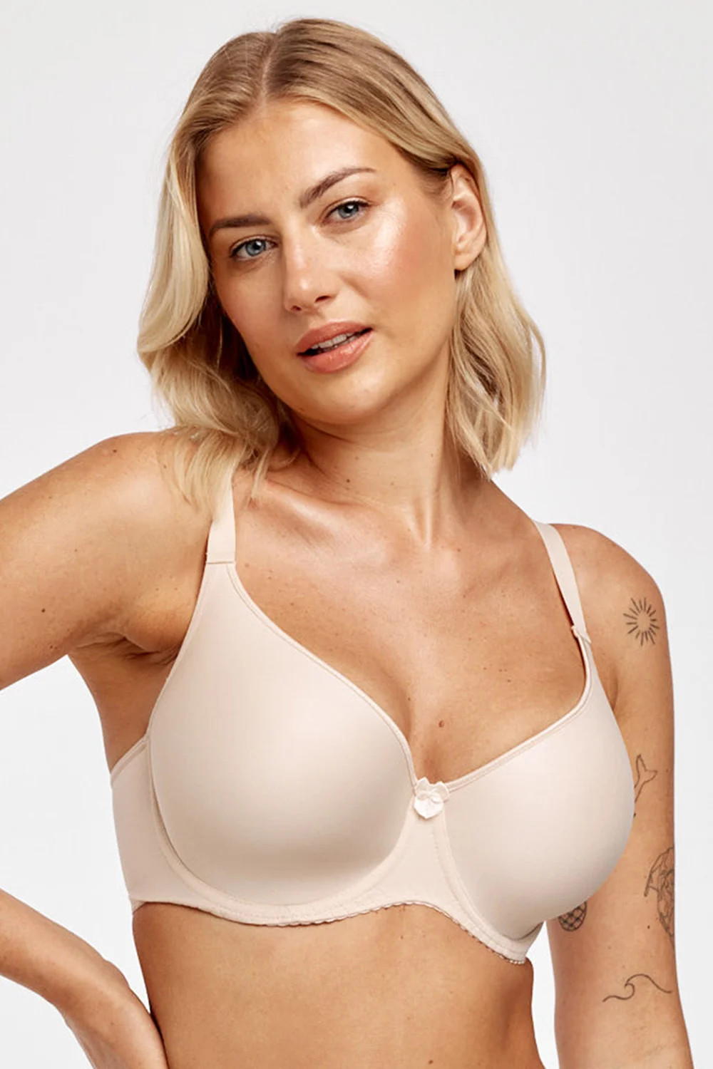 Podprsenka značky Azal, model Sonia, má drátky, které podporují a tvarují prsa. Výrobek má nastavitelná ramínka bez možnosti odepnutí. Podprsenka se zapíná na háčky. Místo zapínání: na zádech. 2 řady svislých výšivek. 3 stupně vodorovných výšivek. Výrobek je vyroben z 88 % polyamidu, 8 % bavlny, 4 % elastanu. Dámský výrobek.