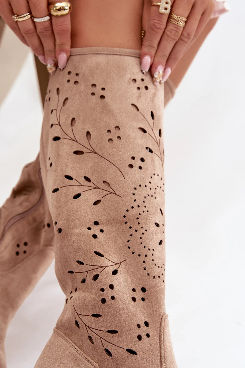 Ažurové dámské kozačky na klínu Khaki model 21821919 - Boto