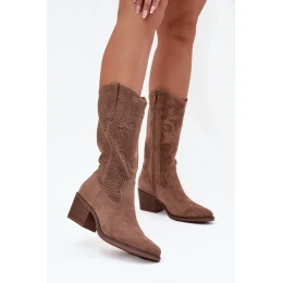 Ažurové Kozačky Na Podpatku Tmavě Béžové model 21708366 - Boto