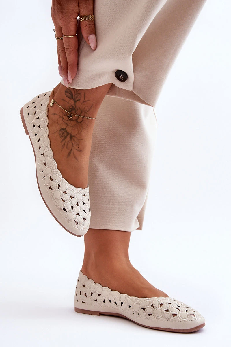 Ažurové Lesklé Baleríny Dámské Bežové model 21625346 - EVENTO