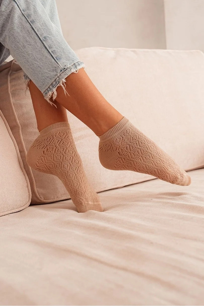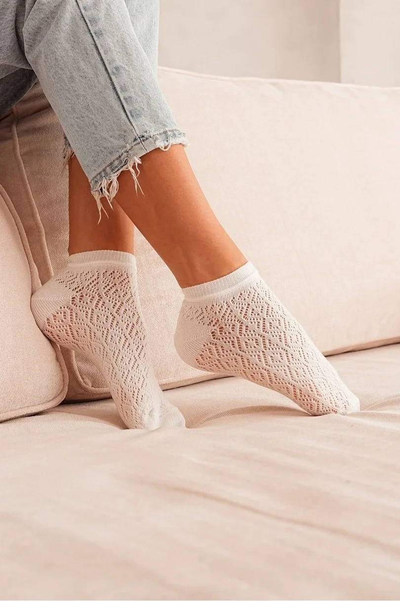 Zůstaňte lehké a ženské s ažurovými chodidly Milena 1504.002. Jsou vyrobeny z měkké, prodyšné bavlny s příměsí elastanu a polyamidu a zaručují pohodlné nošení i během dne. Jemný ažurový vzor dodává chodidlům eleganci a díky němu se skvěle hodí jak pro každodenní nošení, tak pro stylovější outfity. Jsou ideální pro teplejší dny – zajišťují prodyšnost a svěžest.