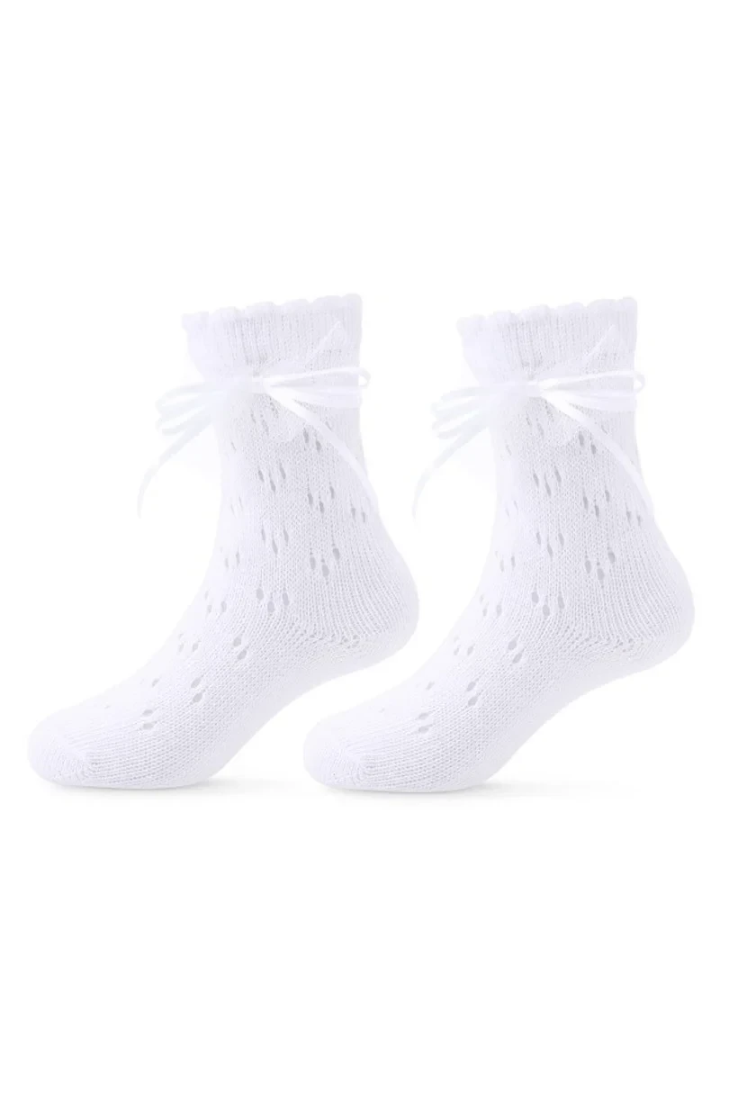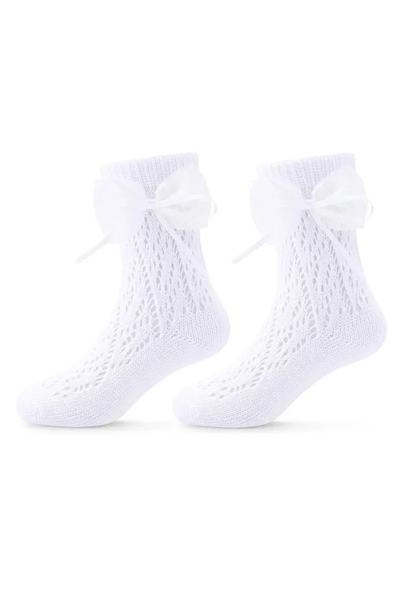 Dětské prolamované ponožky s mašlí.Složení: 72 % bavlna, 24 % polyester, 4 % elastan.