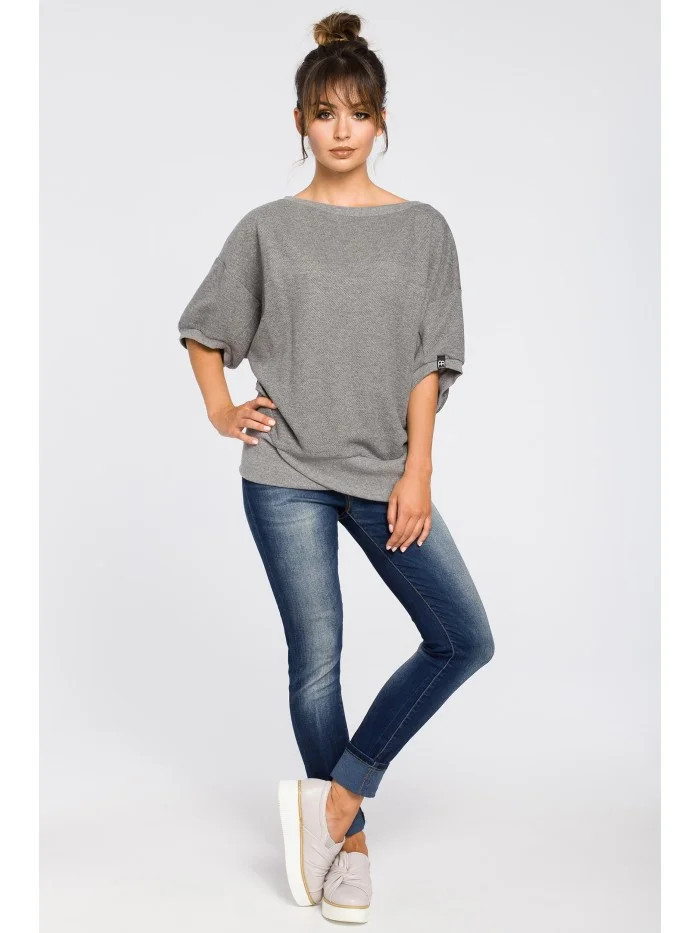 B048 Halenka nadměrné velikosti se zavinovacími detaily - šedá