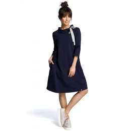 B070 Oversized šaty s páskem na zavázání - tmavě modré