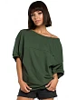 90% bavlna 10% elastan Zabalte se do této mikiny z úpletu nadměrné velikosti s předním zabaleným panelem, kdykoli potřebujete něco měkkého a příjemného. Podrobnosti o výrobku: mikina z úpletu volného střihu nadměrné velikosti spadlá linie ramen asymetrický široký výstřih "off-shoulder" (lze nosit bez jednoho ramene) krátké široké rukávy délka přes boky minimalistický design s jemným detailem předního švu žebrovaný lem a úprava výstřihu navrženo a vyrobeno v Polsku naše modelka je 172 cm vysoká a nosí velikost S