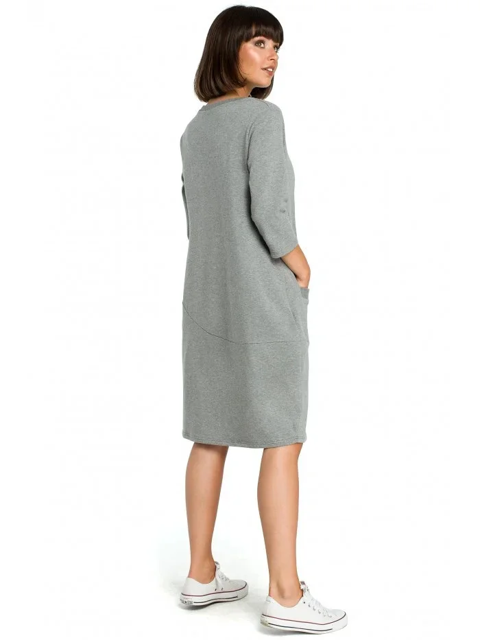B083 Oversized šaty s přední kapsou - šedé