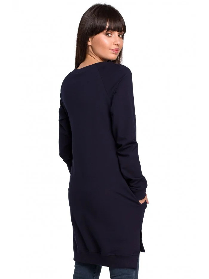 B101 Tunika nadměrné velikosti s dělenými boky - tmavě modrá
