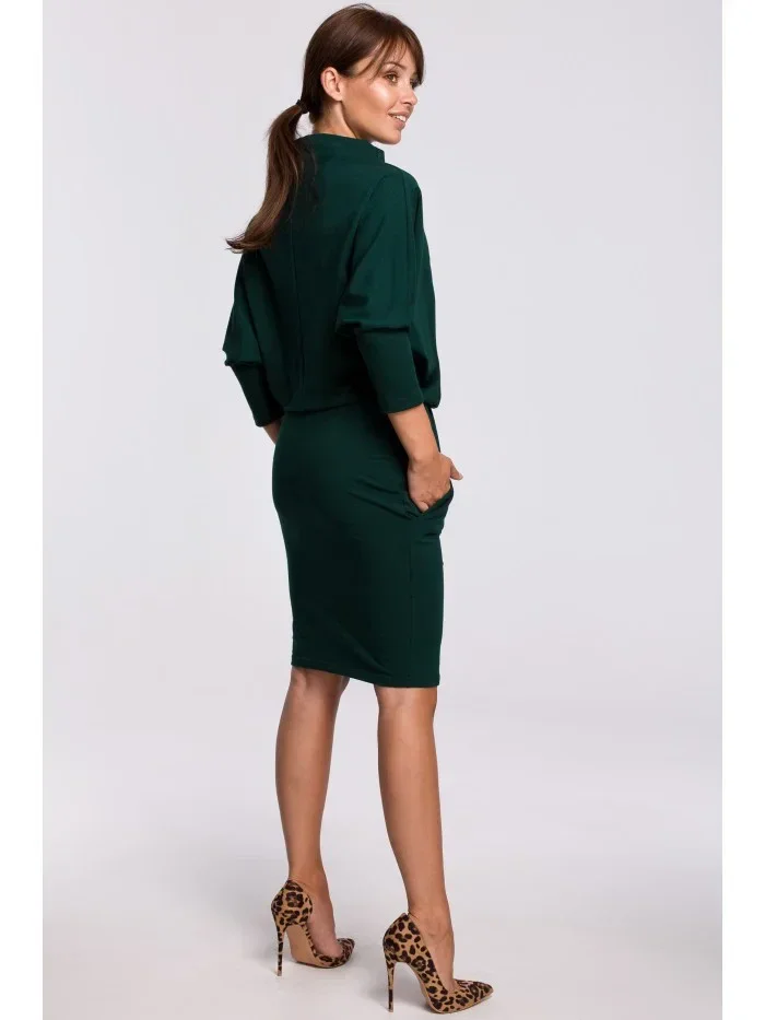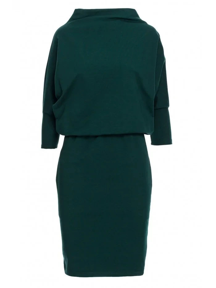 B175 Šaty s kimonovými rukávy - tmavě zelené