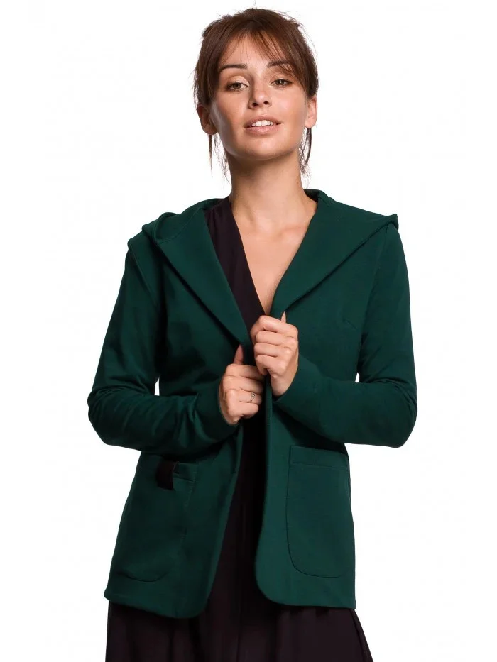 B180 Blejzr s kapucí z bavlněného úpletu - tmavě zelený