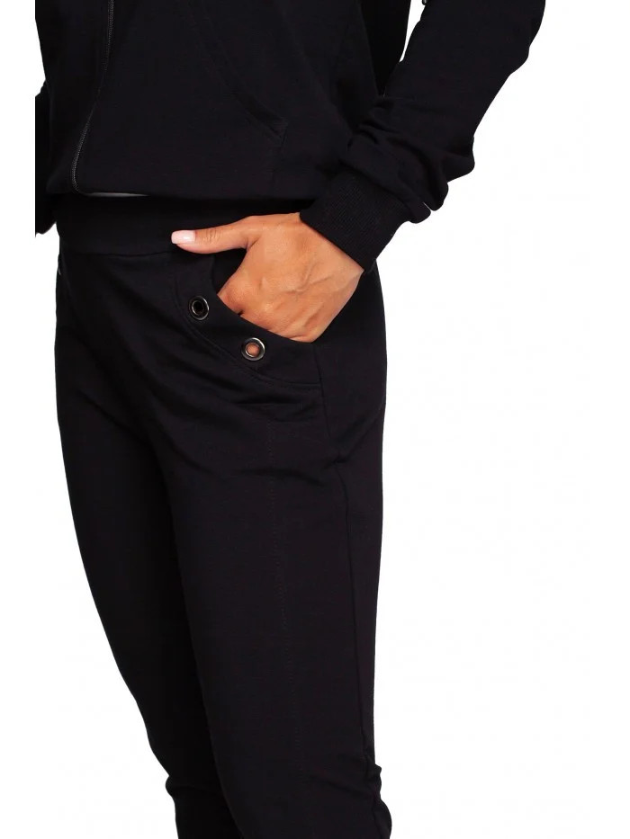 B243 Kalhoty s rovnými nohavicemi, nohavice s oky - černé