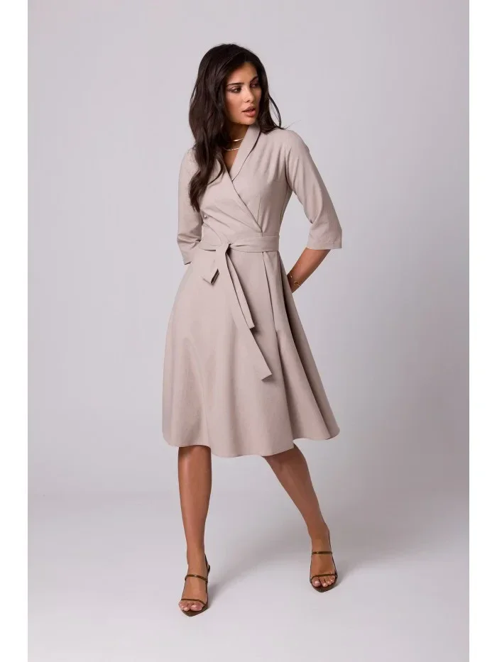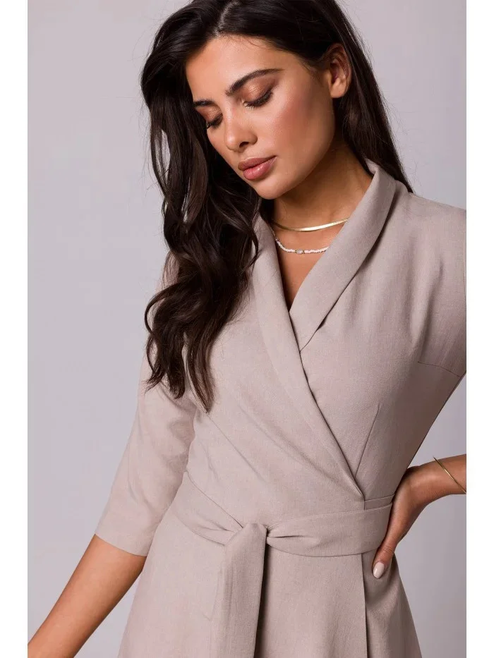 model 18407105 Zavinovací šaty se šálovým límcem béžové - BeWear