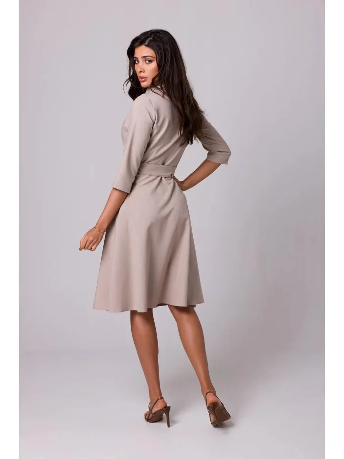 B255 Zavinovací šaty se šálovým límcem - béžové