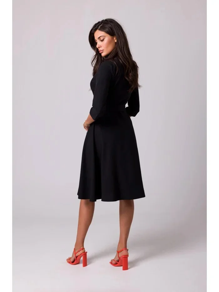 model 18407111 Zavinovací šaty se šálovým límcem černé - BeWear